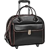 Removable high-density laptop sleeve that protects laptops up to 15.4 inch in size. Dual Laptop Protection System uses a high-tech ABS honeycomb frame to protect laptop from exterior impact and a sleeve with high-density foam to help absorb shock and prevent moisture intake. Smart Attachment Strap allows transport on extended handles of other rolling cases and luggage. W series chic ladies' italian leather black case trimmed in red. Exterior dimensions: 16.75 inch W x 7 inch D x 13.75 inch H. Laptop interior dimensions: 14 inch W x 1.5 inch D x 10 inch H. Hand strap drop length: 4 inch. Shoulder strap drop length: 16-19.5 inch. Telescopic handle: 40 inch. Black. Includes laptop sleeve. Patented 2-in-1 detachable wheel and handle system. Quick access front pocket is secured with a key lock. Interior organizer with storage space for media devices, business cards, key holder and pens. Double compartment divided by secured zipper pocket for important documents. Non-defective return will be charged 20% restocking fee.