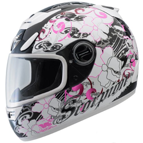 Scorpion Fiore EXO-700 Sports Bike Racing Helmet.Color: Pink.2011 Model.Size: Small. Fiberglass/Kevlar Matrix Shell: Quiet, aero-tuned design for wind-tunnel examined relief. EPS-lined chin bar for additional safety SpeedShift quick-change shield device (patent pending): Easy, secure tool-less faceshield changes in ten 2nds or much less EverClear no-fog faceshield: Optically-correct shield with state-of-the art fog-free know-how and anti-scratch hardened coating KwikWick moisture-wicking helmet liner and cheek pads: Breathable, easily removable and washable.. ... Read more Scorpion Fiore EXO-700 Sports Bike Racing Motorcycle Helmet - Pink / Small